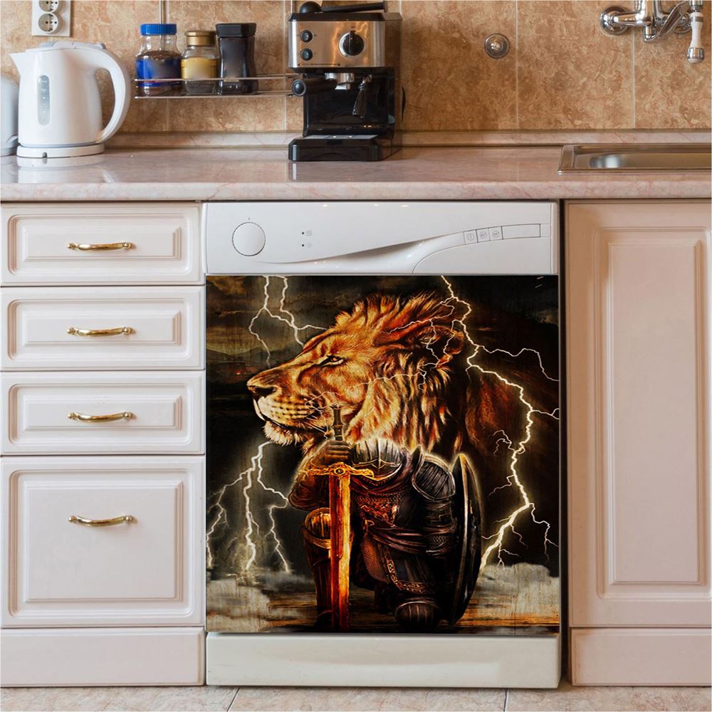 Lion And The Warrior Dishwasher Cover, Christian Dishwasher Wrap, Religious Kitchen Decoration