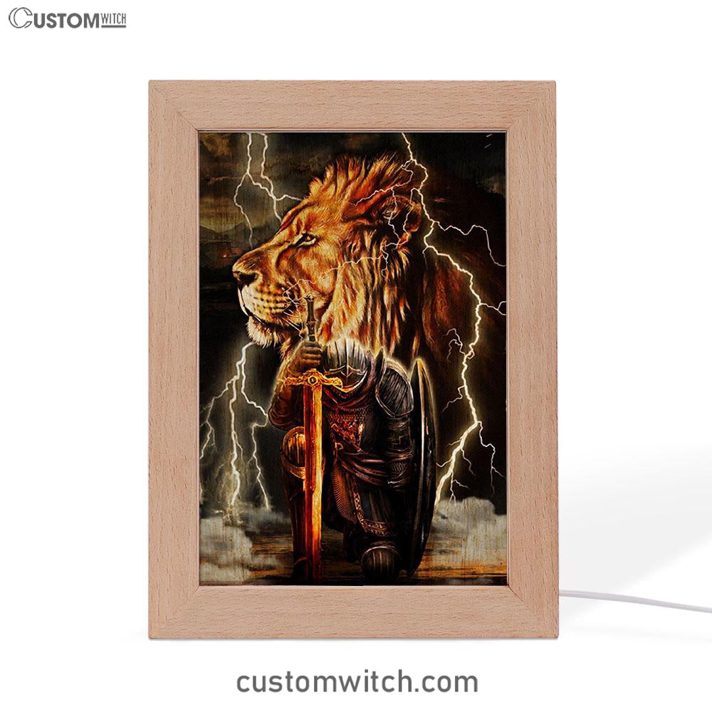 Lion And The Warrior Frame Lamp Art - Christian Frame Lamp - Religious Gifts Night Light