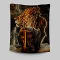 Lion And The Warrior Tapestry Wall Art - Christian Wall Tapestry - Religious Tapestries Wall Hanging Prints
