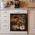 Lion Crown Of Thorn Jesus On The Cross Dishwasher Cover, Lion Dishwasher Wrap, Christian Kitchen Decoration