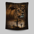 Lion Crown Of Thorn Jesus On The Cross Tapestry - Lion Tapestry Print - Christian Wall Art - Religious Home Decor