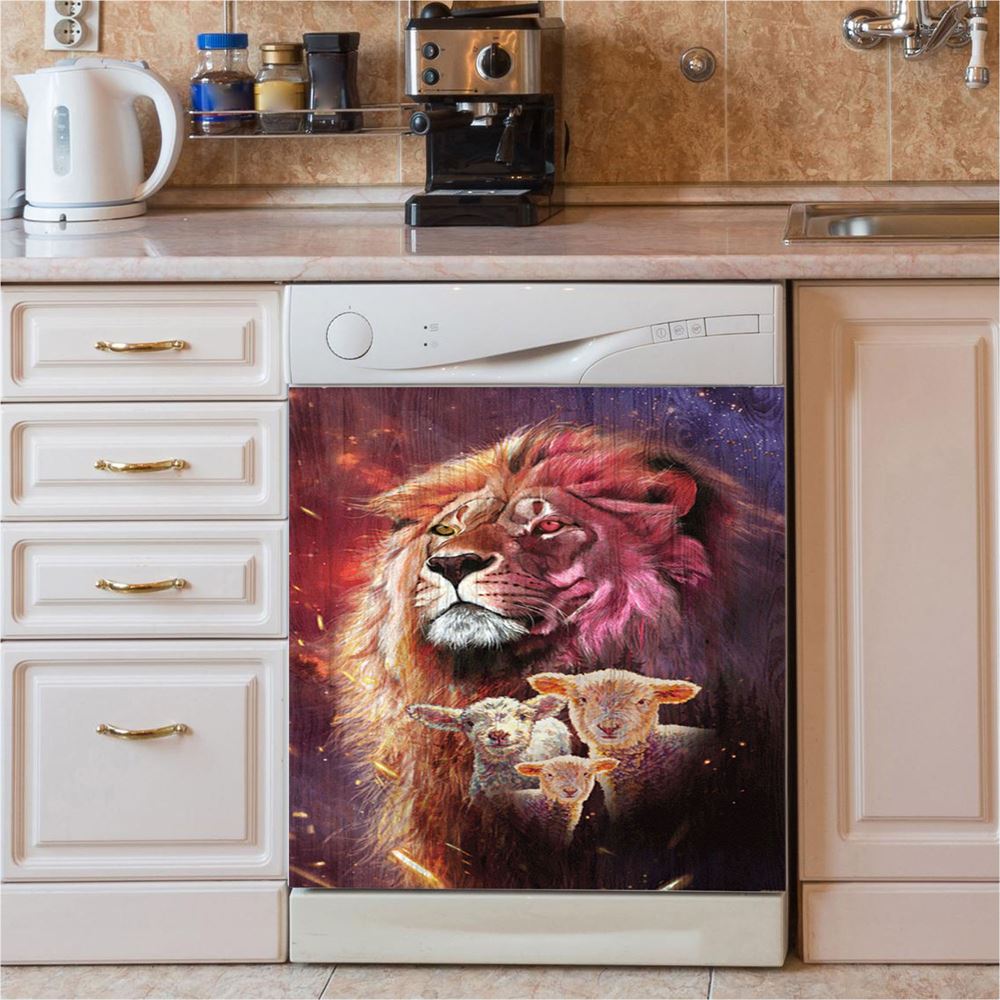 Lion Head Lamb Of God Dishwasher Cover, Lion Dishwasher Wrap, Christian Kitchen Decoration