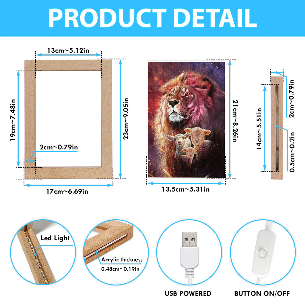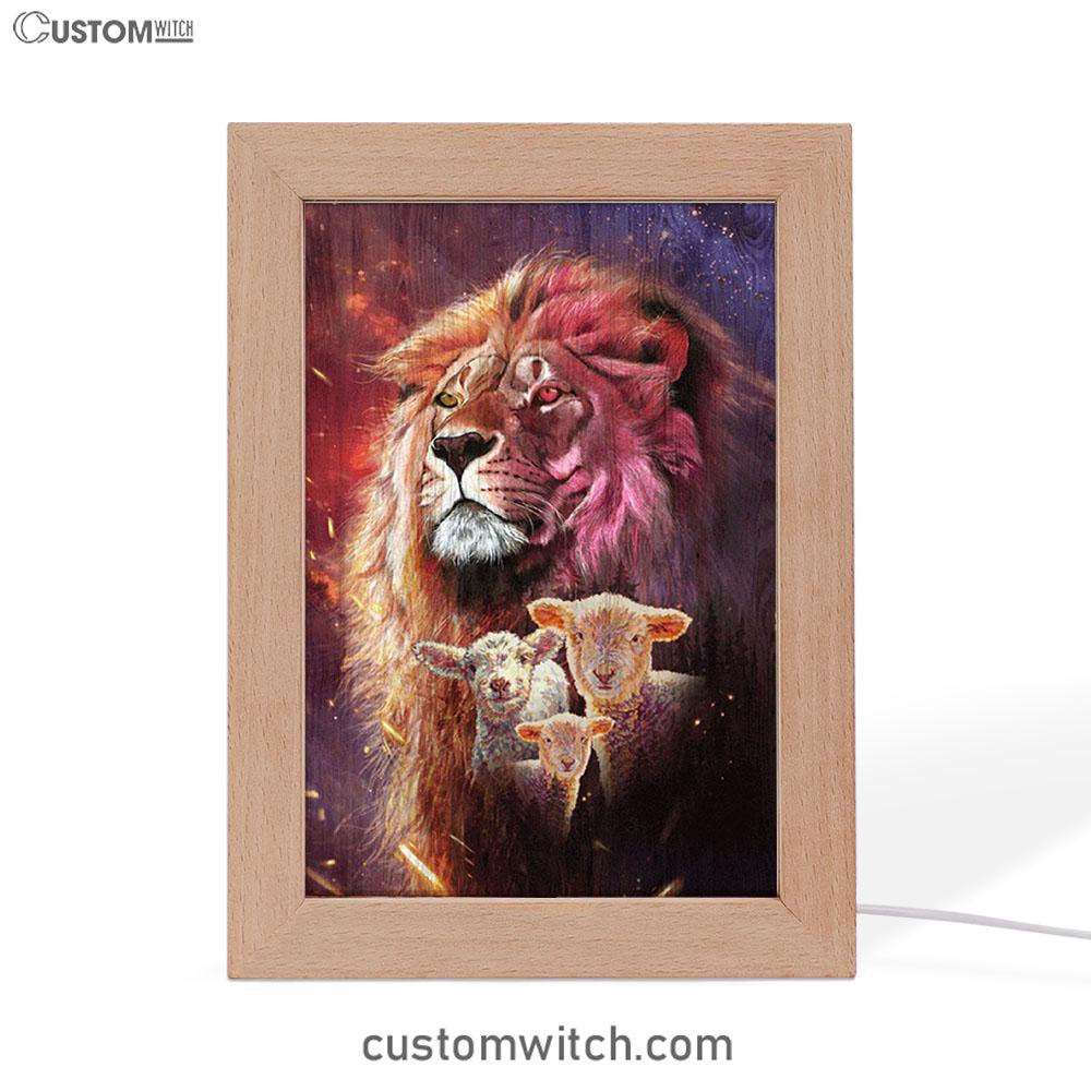 Lion Head Lamb Of God Frame Lamp - Lion Frame Lamp Print - Christian Art - Religious Home Decor