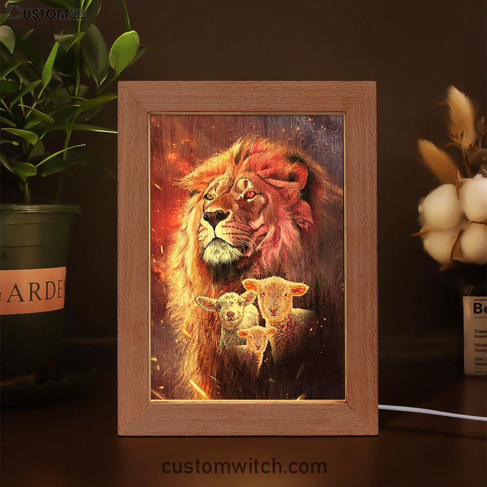 Lion Head Lamb Of God Lion Of Judah Frame Lamp Art - Christian Art - Bible Verse Art - Religious Home Decor