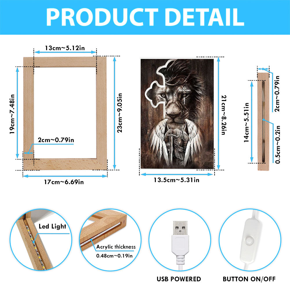 Lion Knight Of God Warrior With Wings Frame Lamp - Lion Frame Lamp Print - Christian Art - Religious Home Decor