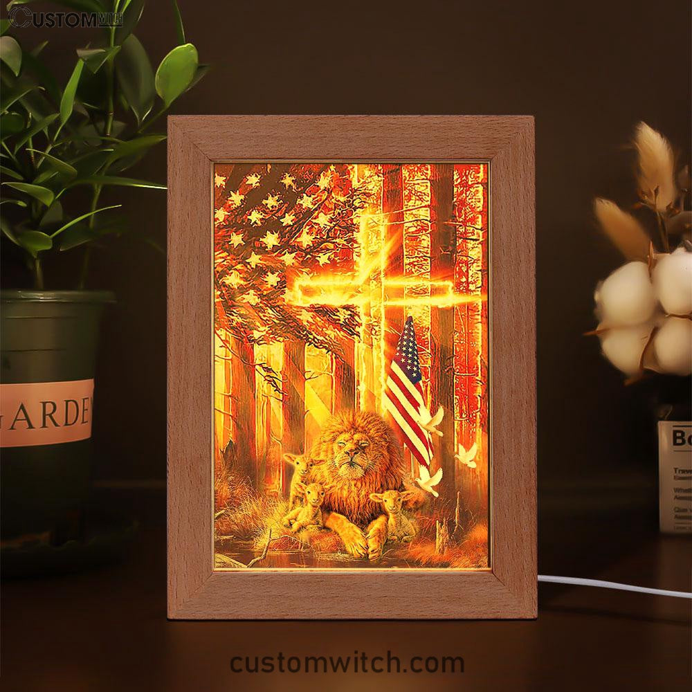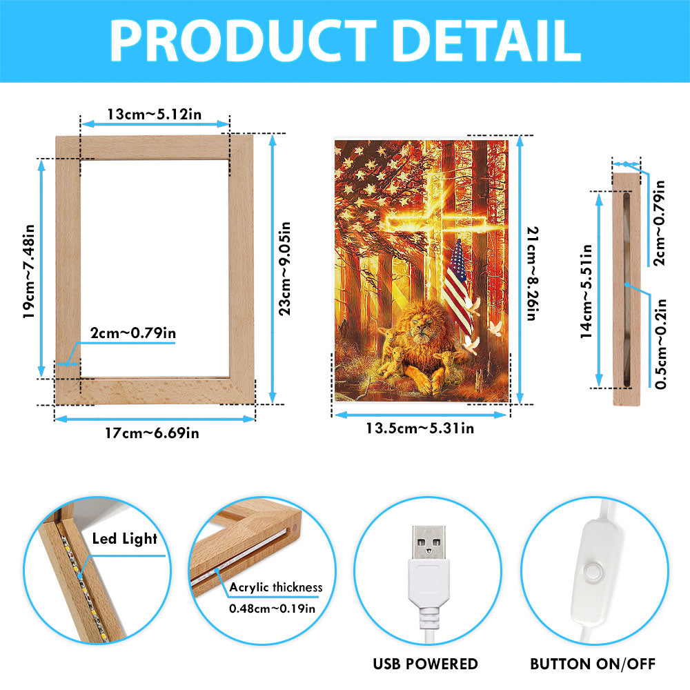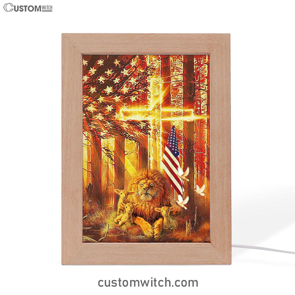 Lion & Lambs Frame Lamp Art - Christian Frame Lamp - Religious Gifts Night Light