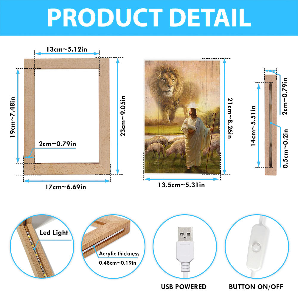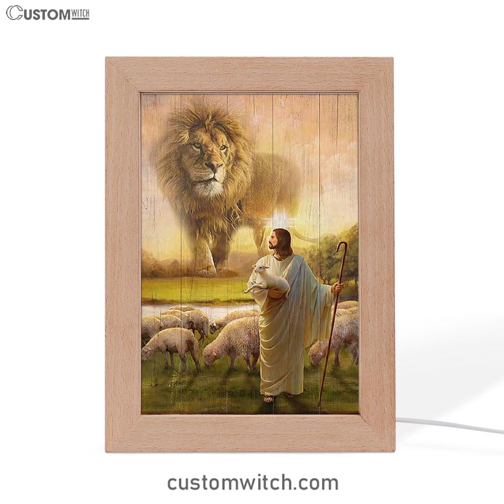 Lion Lambs Walking With Jesus Frame Lamp - Lion Frame Lamp Print - Christian Art - Religious Home Decor