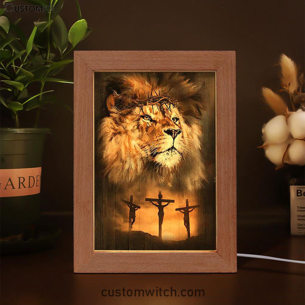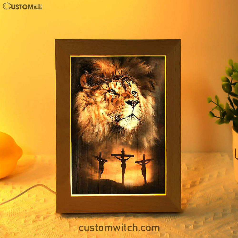 Lion Of Judah Crown Of Thorn Frame Lamp - Lion Frame Lamp Print - Christian Art - Religious Home Decor