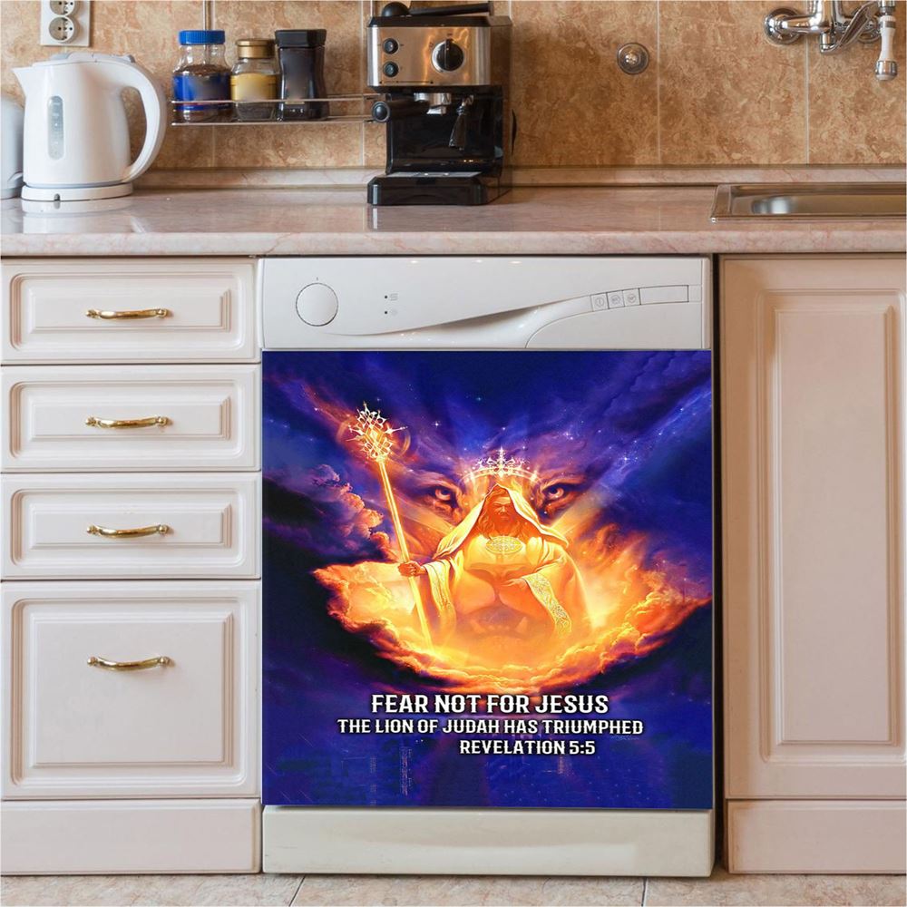 Lion Of Judah Fear Not For Jesus Dishwasher Cover, Revelation 5 5 Dishwasher Wrap, Jesus Kitchen Decoration
