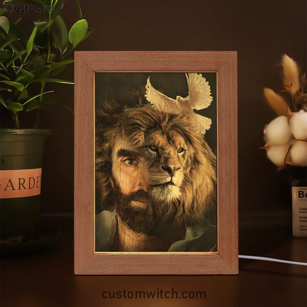 Lion Of Judah Jesus And The Dove Frame Lamp Prints - Jesus Christ Frame Lamp Art - Christian Decor