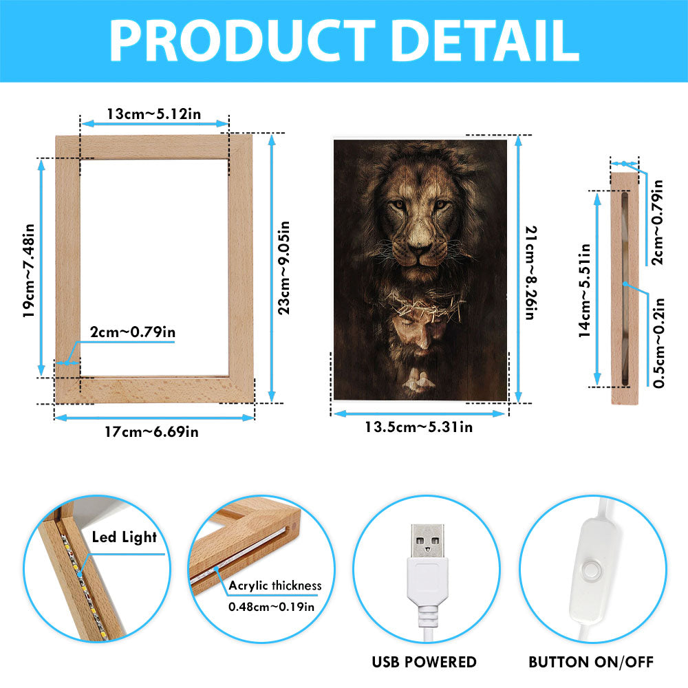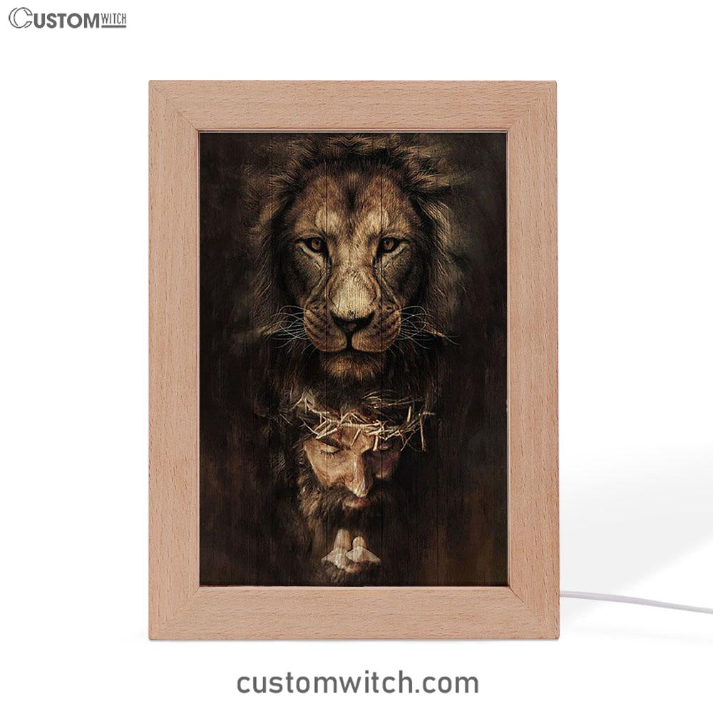 Lion Of Judah Jesus Face Frame Lamp - Lion Frame Lamp Print - Christian Art - Religious Home Decor