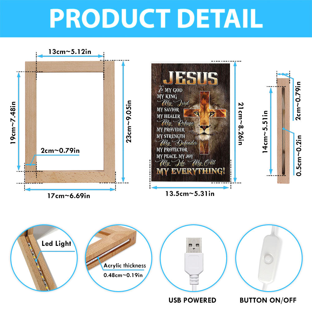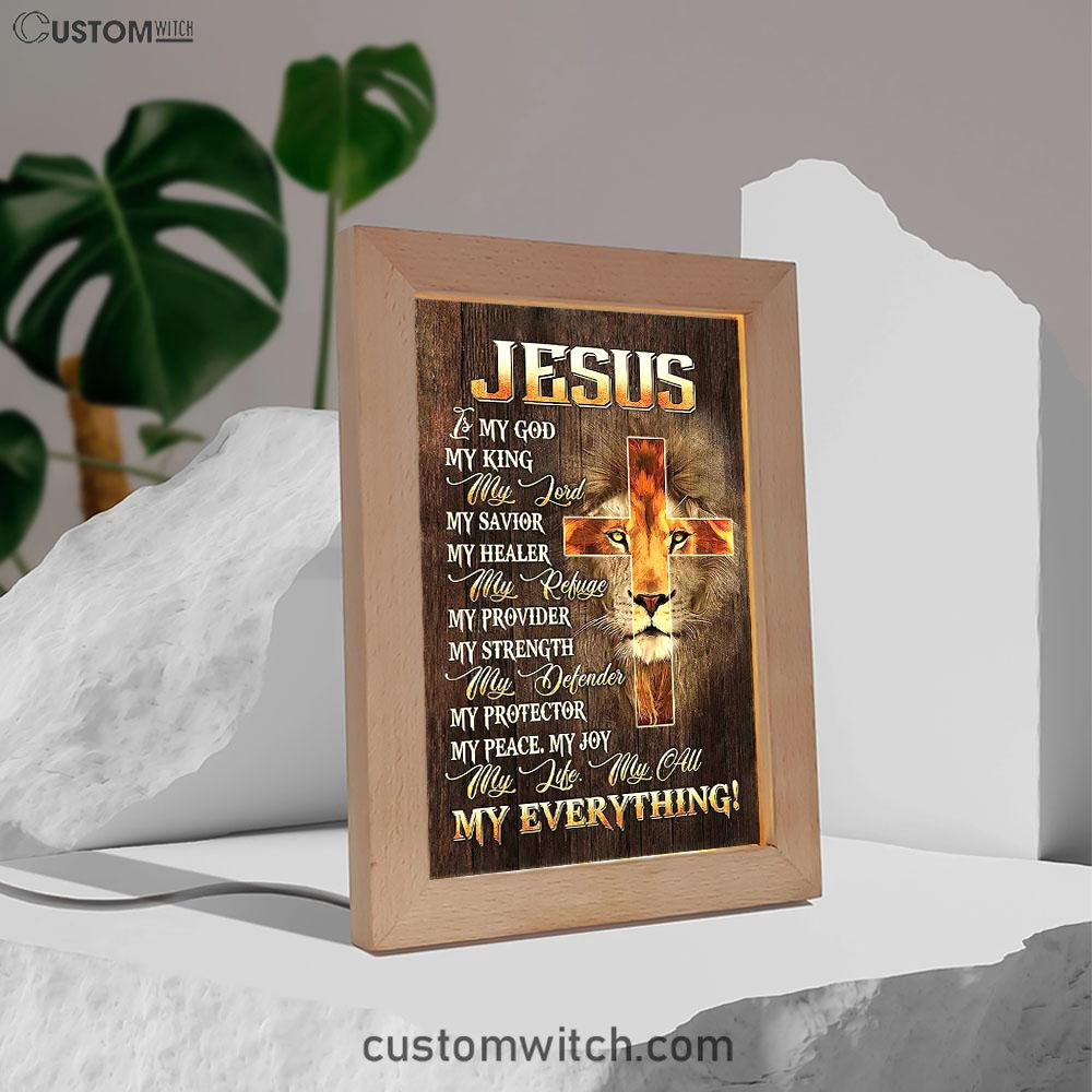 Lion Of Judah Jesus Is My King My God Frame Lamp Prints - Lion Frame Lamp Art - Christian Inspirational Frame Lamp