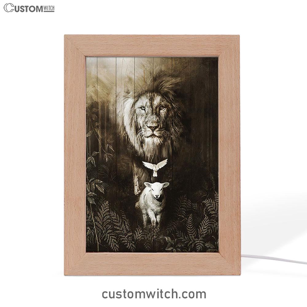 Lion Of Judah Lamb Of God Dove Frame Lamp - Lion Frame Lamp Print - Christian Art - Religious Home Decor