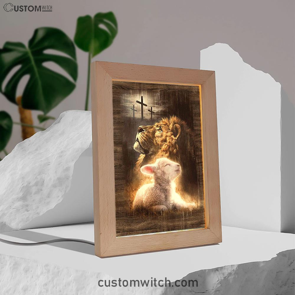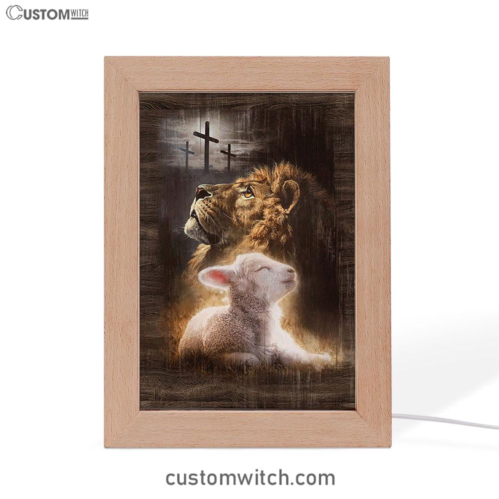 Lion Of Judah Lamb Of God The Rugged Crosses Frame Lamp - Lion Frame Lamp Print - Christian Art - Religious Home Decor