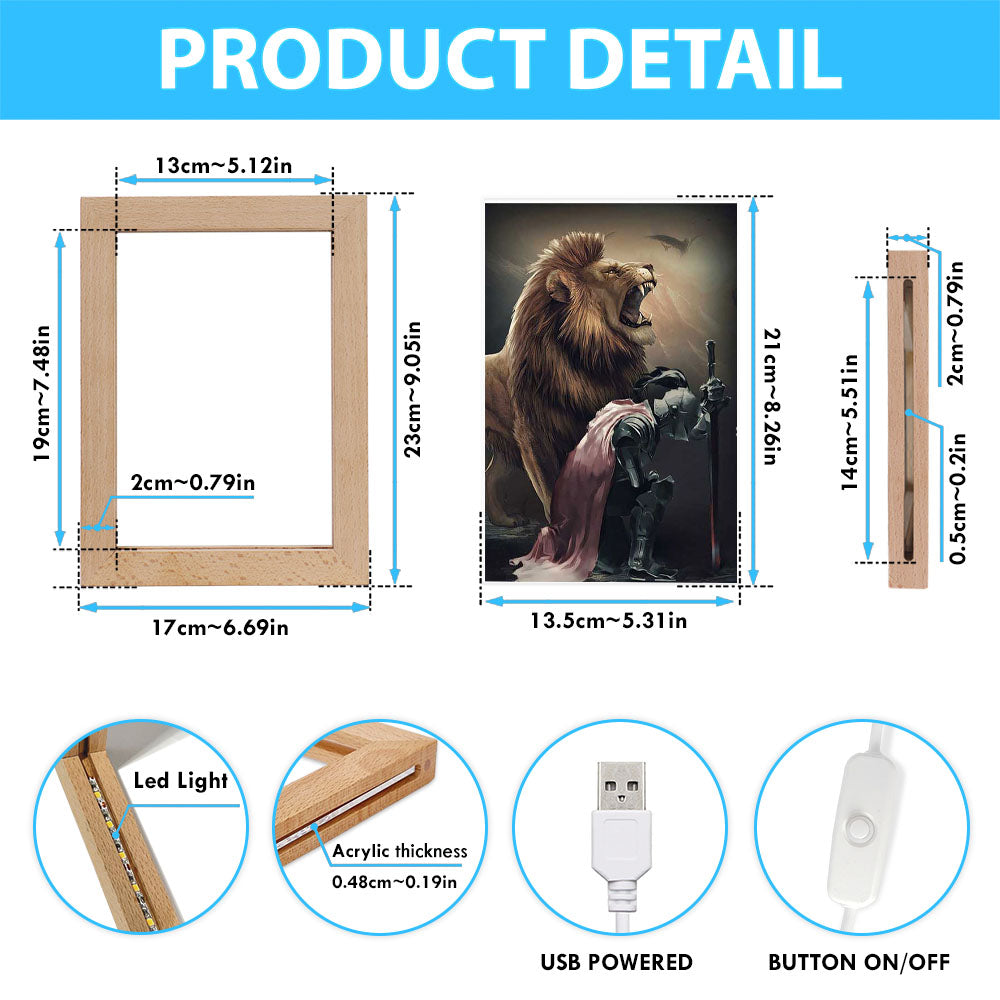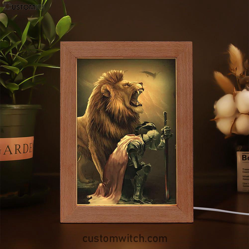 Lion Of Judah The Knight Of God Frame Lamp - Lion Frame Lamp Print - Christian Art - Religious Home Decor