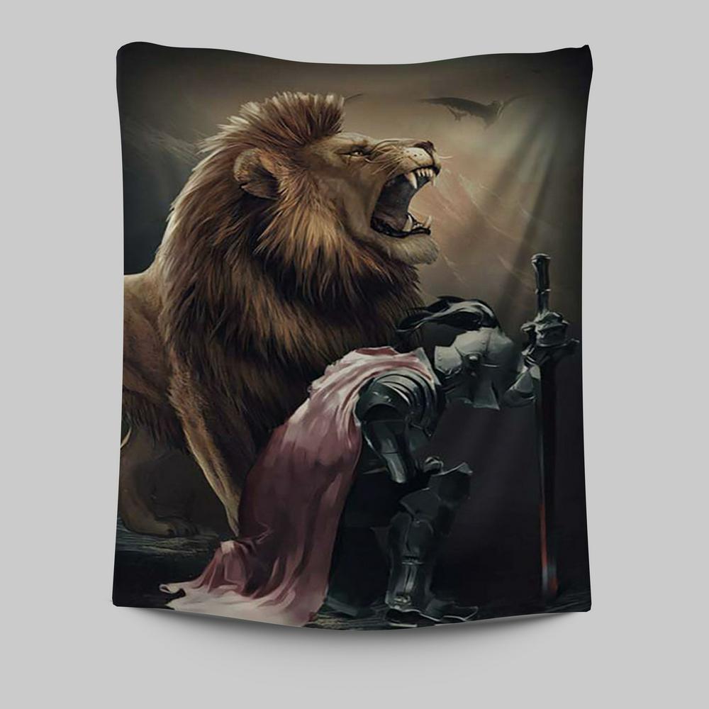Lion Of Judah The Knight Of God Tapestry - Lion Tapestry Print - Christian Wall Art - Religious Home Decor