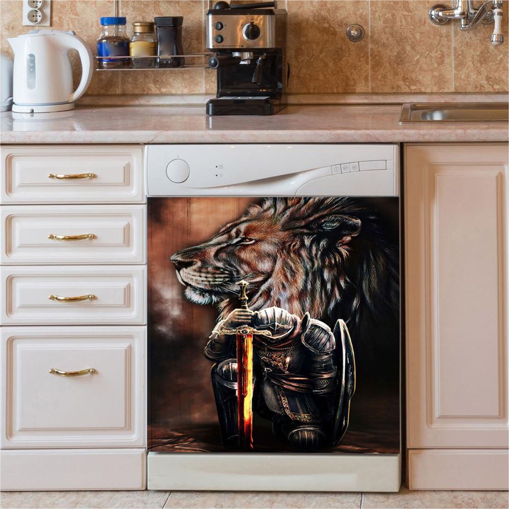 Lion & Prayer Warrior Dishwasher Cover, Christian Dishwasher Wrap, Religious Kitchen Decoration