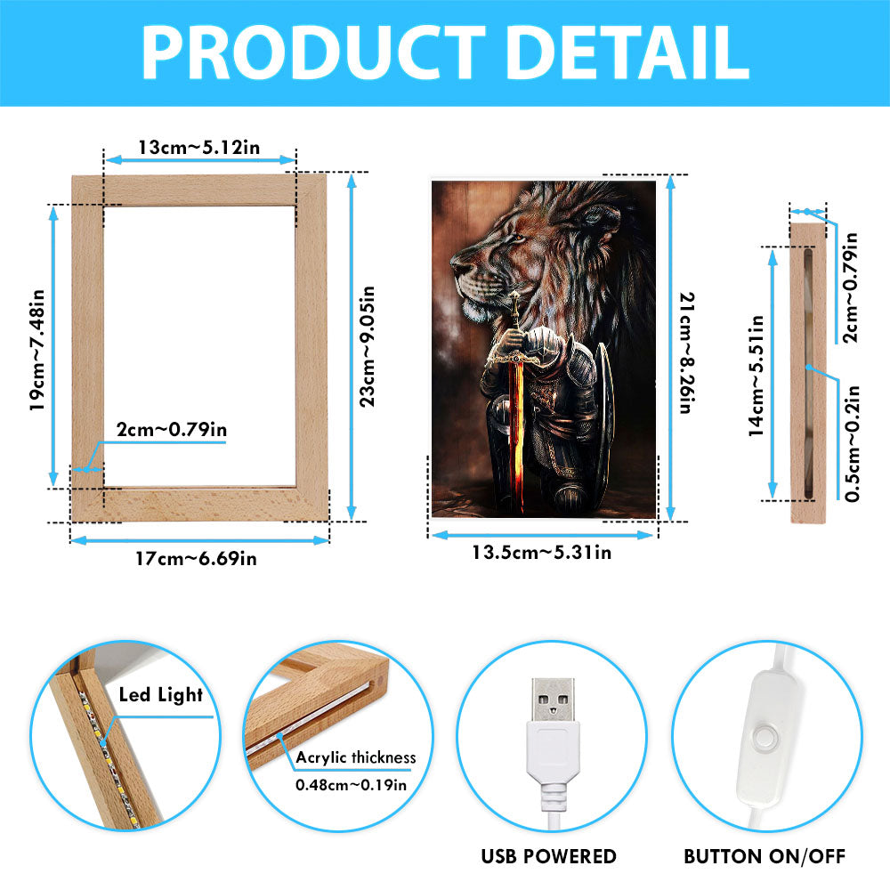 Lion & Prayer Warrior Frame Lamp Art - Christian Frame Lamp - Religious Gifts Night Light