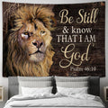 Lion Psalm 4610 Be still I am God Tapestry Wall Art - Bible Verse Tapestry - Religious Tapestry Wall Hanging