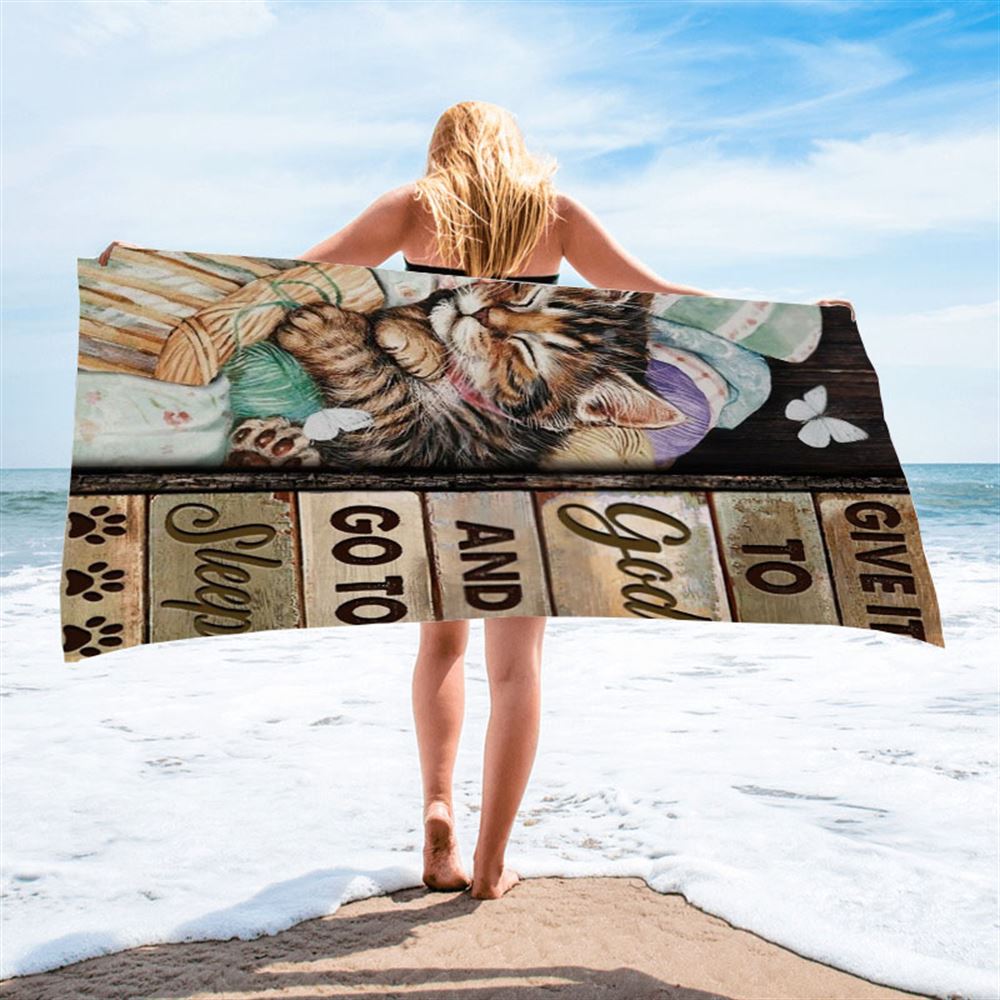 Little Cat Drawing Give It To God And Go To Sleep Beach Towel, Christian Beach Towel, Christian Gift, Gift For Women