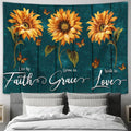 Live By Faith Grow In Grace Walk In Love Tapestry Wall Art - Sunflowers - Christian Wall Decor