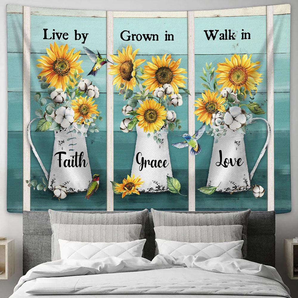 Live By Faith Grown In Grace Sunflower Vase Hummingbird Tapestry Art - Bible Verse Wall Art - Wall Decor Christian
