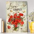 Live Simply Poppy Flower Yellow Butterfly Canvas Print - Inspirational Canvas Art - Christian Wall Art Home Decor