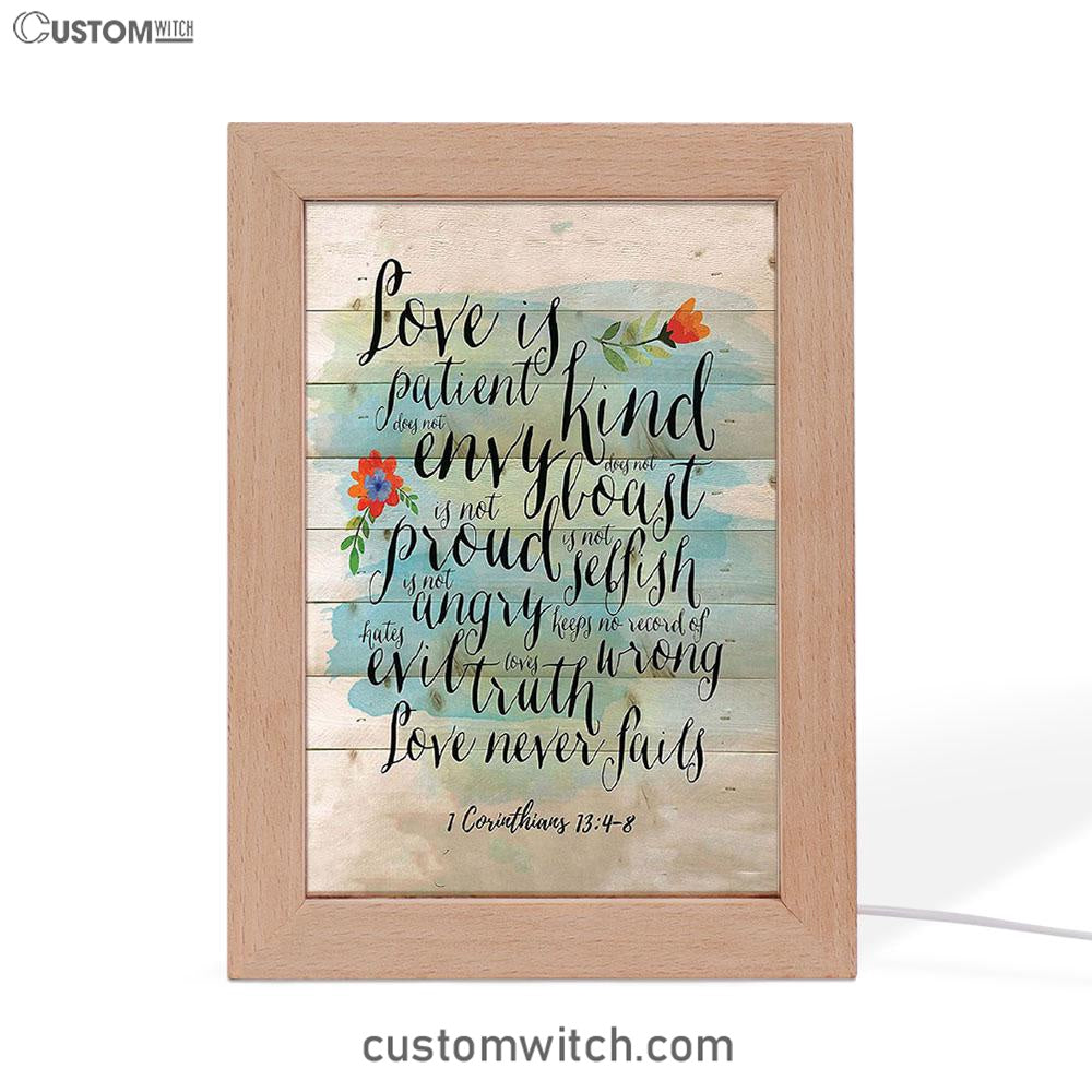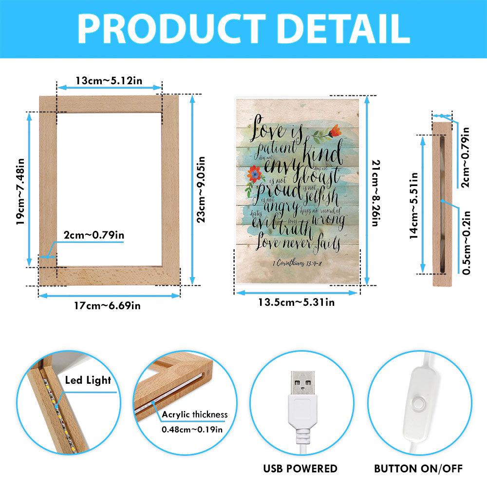 Love Is Patient - Kind - Never Fails - Corinthians 13 4 8 Frame Lamp Art - Christian Night Light Decor