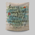 Love Is Patient - Kind - Never Fails - Corinthians 13 4 8 Tapestry Wall Art - Christian Tapestries Wall Art Decor