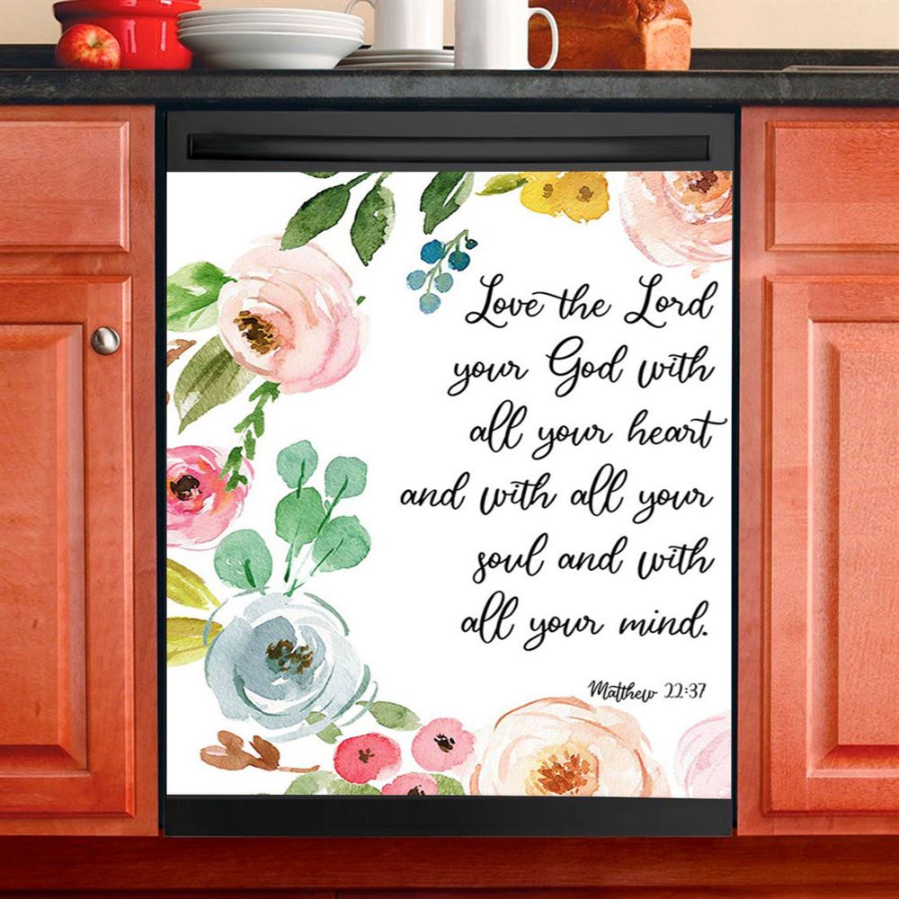 Love The Lord Your God With All Your Heart Dishwasher Cover, Scripture Dishwasher Wrap, Christian Kitchen Decoration