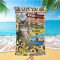 Lovely Cat, Sunflower Garden, Pretty Butterfly, God Says You AreBeach Towel, Christian Beach Towel, Christian Gift, Gift For Women