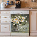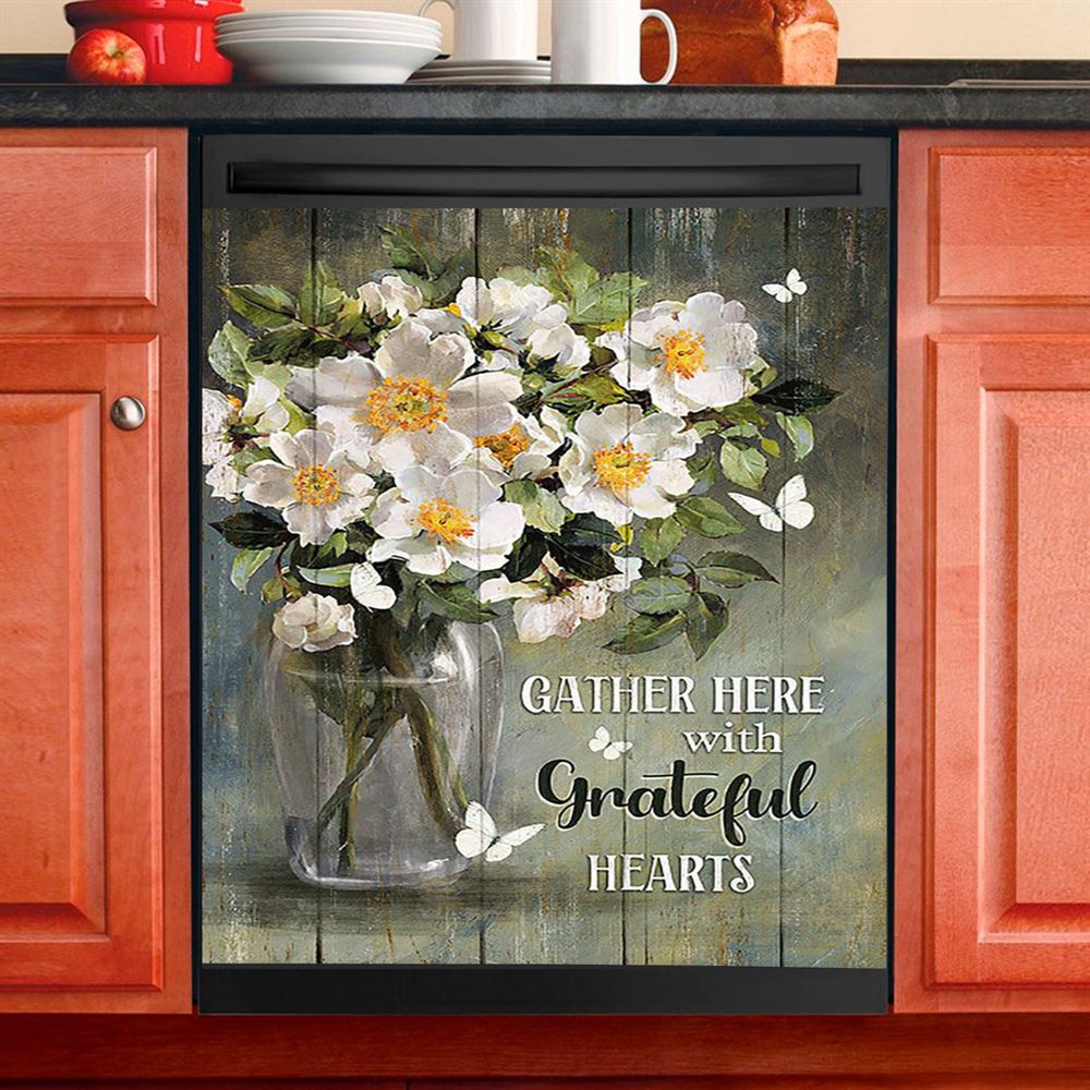 Magnolias Flower Gather Here With Grateful Hearts Dishwasher Cover, Christian Dishwasher Wrap, Religious Kitchen Decoration