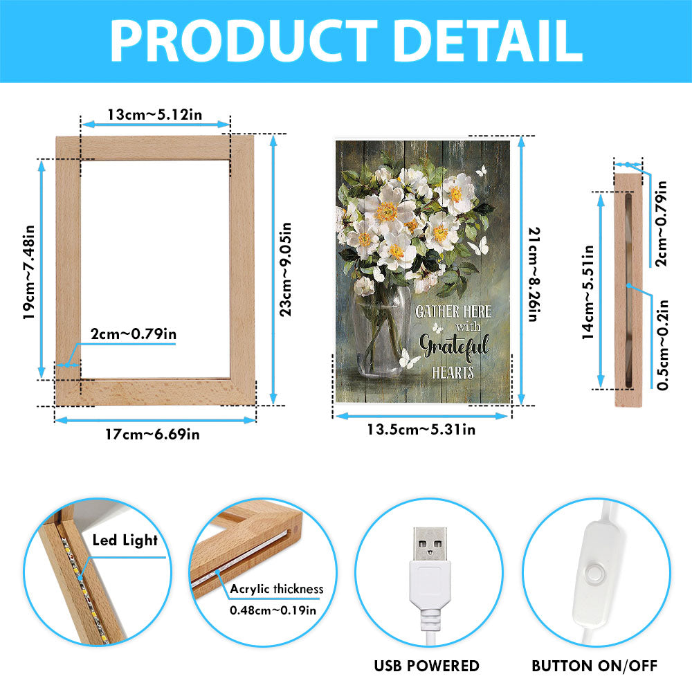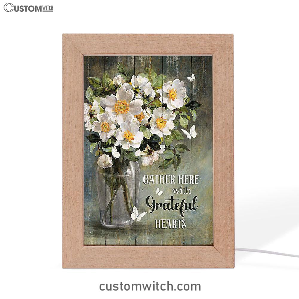 Magnolias Flower Gather Here With Grateful Hearts Frame Lamp - Christian Art - Religious Home Decor