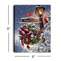 Celebrate the magic of the holiday season with our Home for the Holidays 8x6 Lighted Tabletop Canvas. A charming snowman, dressed in a cozy scarf, top hat, and mittens, greets you with a warm smile as you follow the path to a partially open red door, beckoning you inside. The twinkling lights strung through the trees add a touch of enchantment to the scene, while the colorful lights adorning the pine tree on the other side of the path fill the air with joy and merriment.