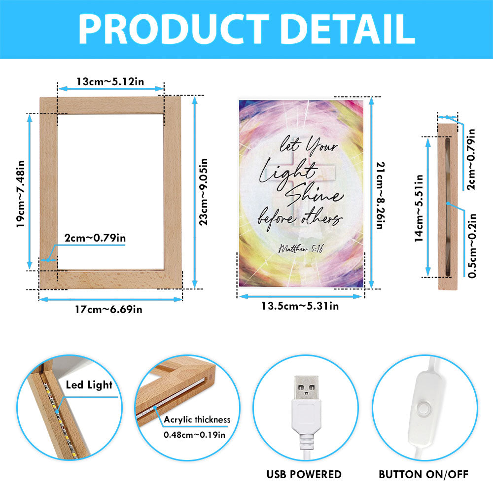 Matthew 516 Let Your Light Shine Before Others Frame Lamp Art - Christian Night Light - Religious Decor