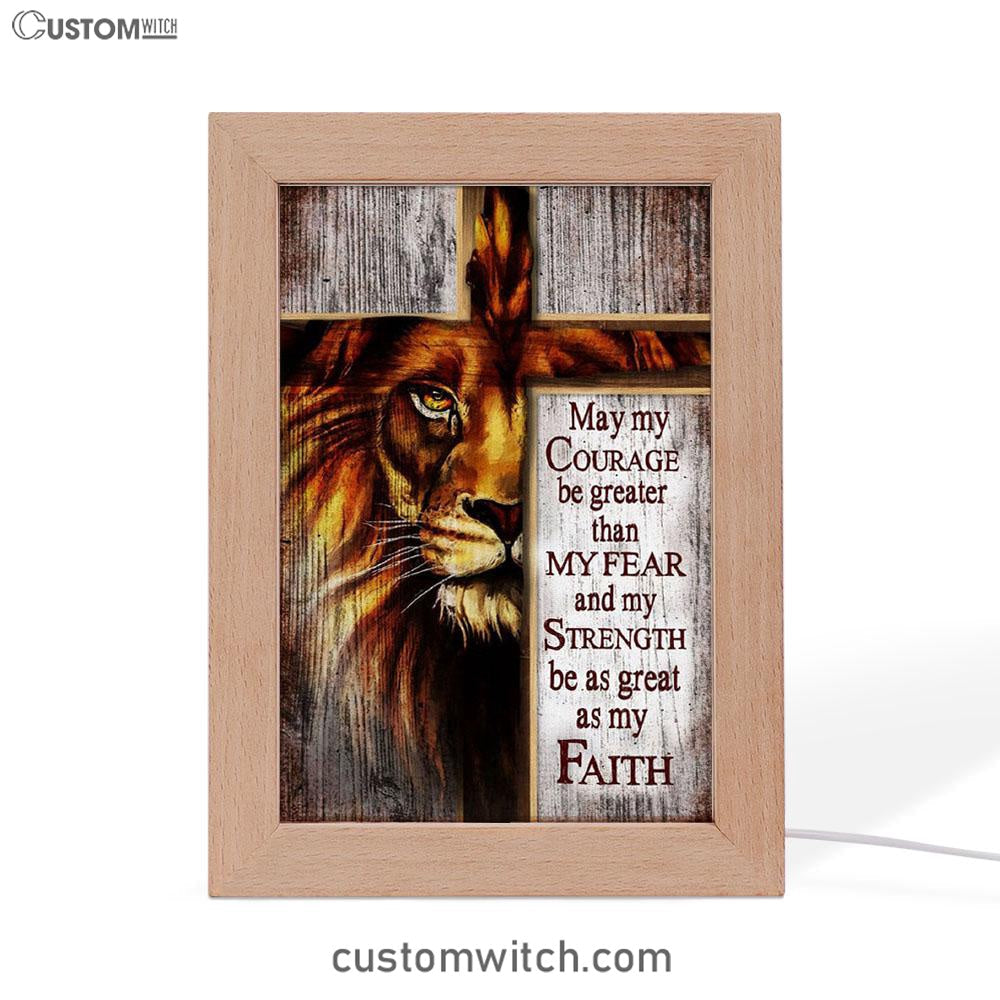 May My Courage Be Greater Than My Fear Lion Of Judah Frame Lamp Art - Christian Night Light - Religious Decor