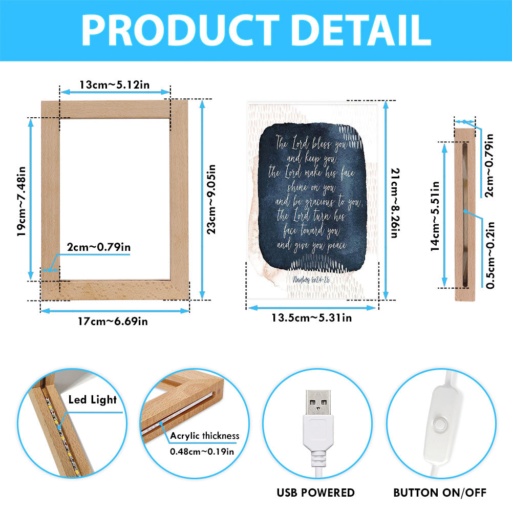 May The Lord Bless You And Keep You - Frame Lamp Art - Christian Night Light Decor