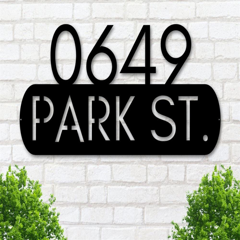 Metal Address Sign, Custom Outdoor House Number Metal Signs With Oak Leaves, Digit Black Address Plaque, Outdoor Sign