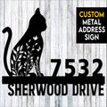 Metal Address Sign, Floral Cat Metal Address Sign, Custom Address Sign, Cat Lover Gift