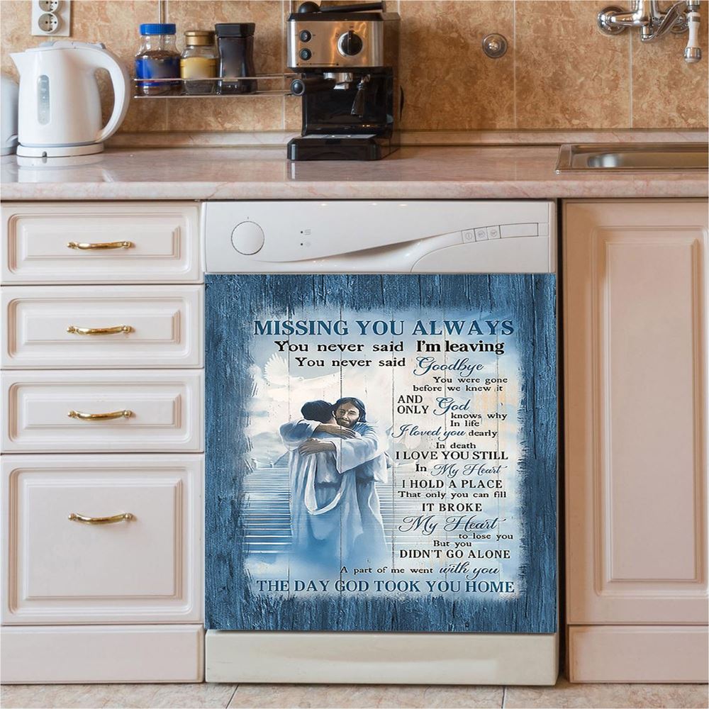 Missing You Always Dishwasher Cover, Jesus Christ Hugging Man In Heaven Dishwasher Wrap, Christian Kitchen Decoration