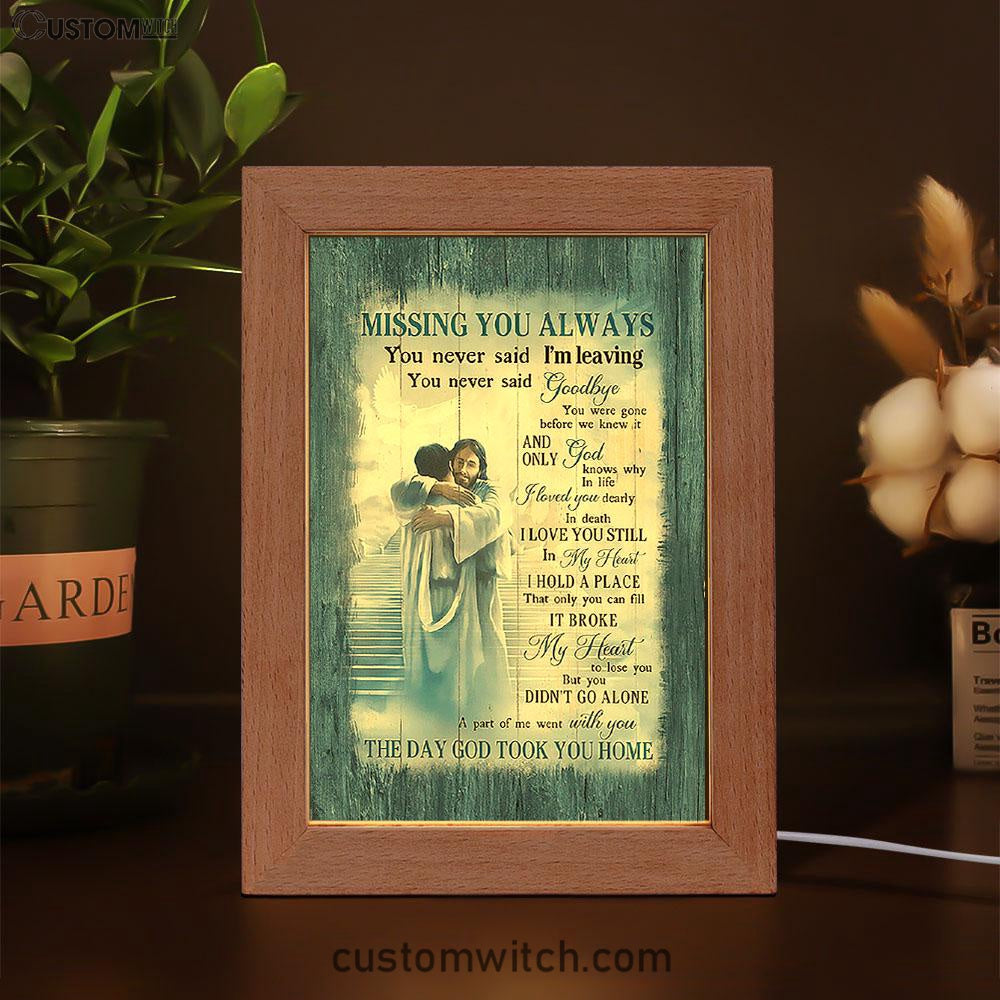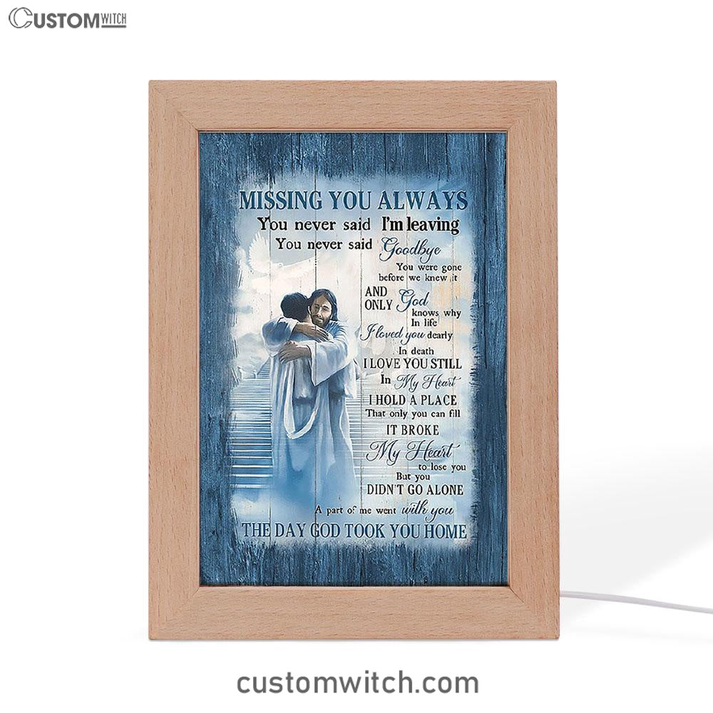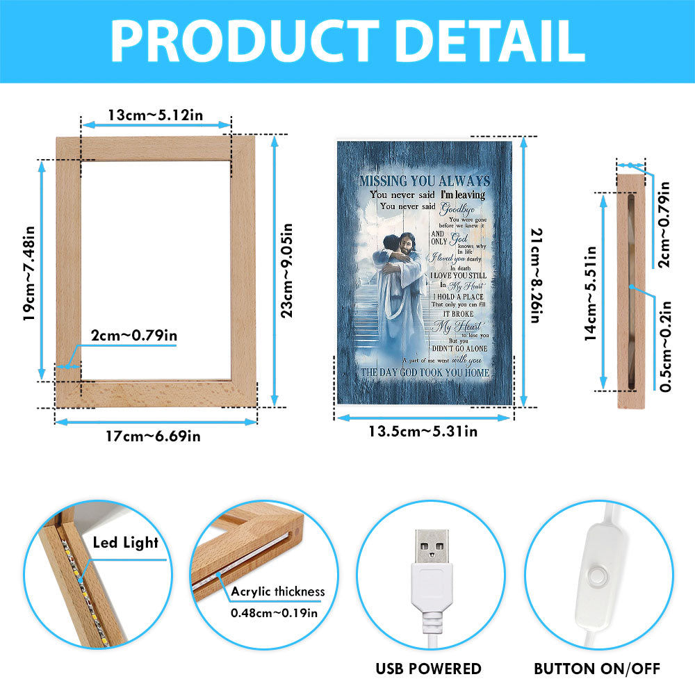 Missing You Always Frame Lamp - Jesus Christ Hugging Man In Heaven Frame Lamp - Christian Art - Religious Home Decor