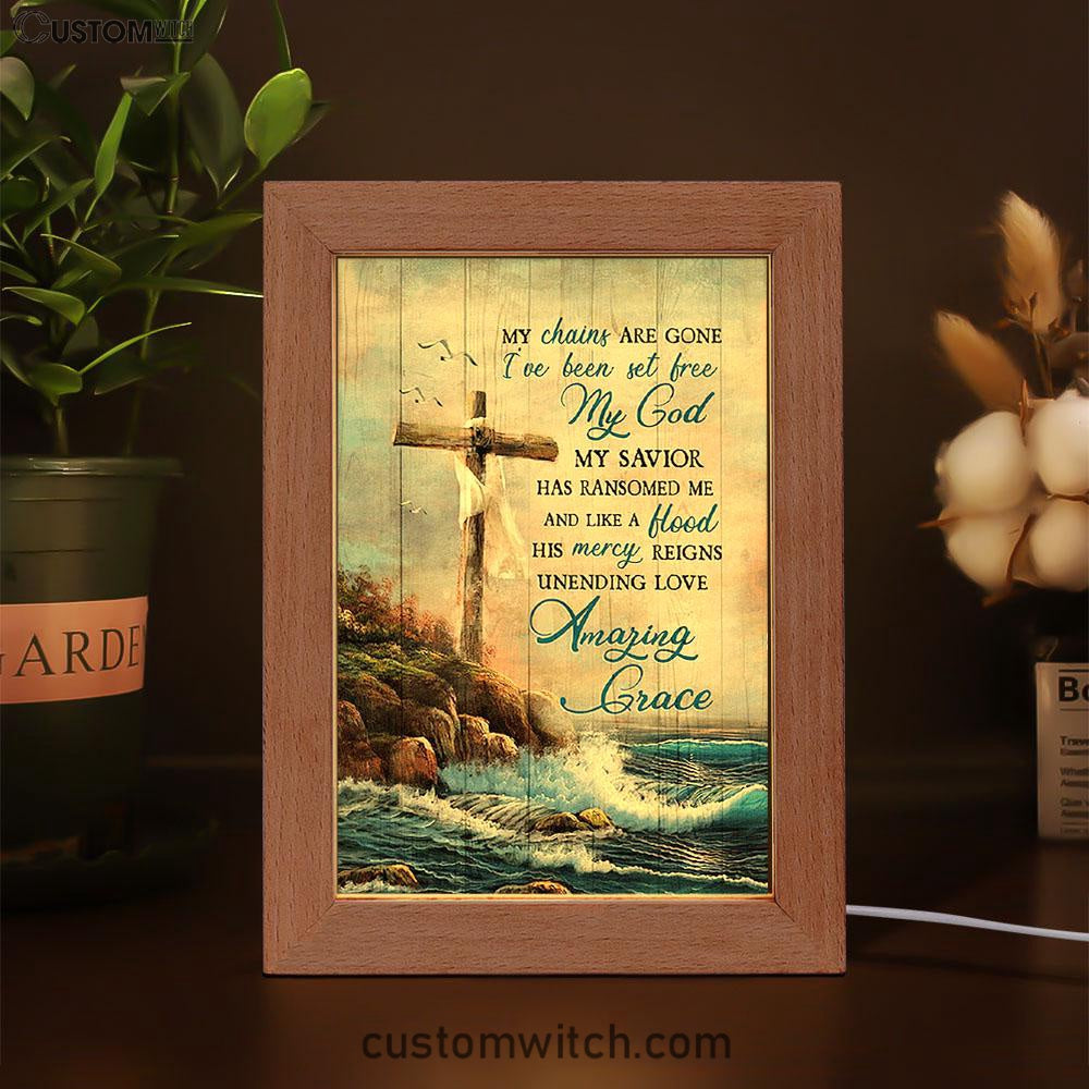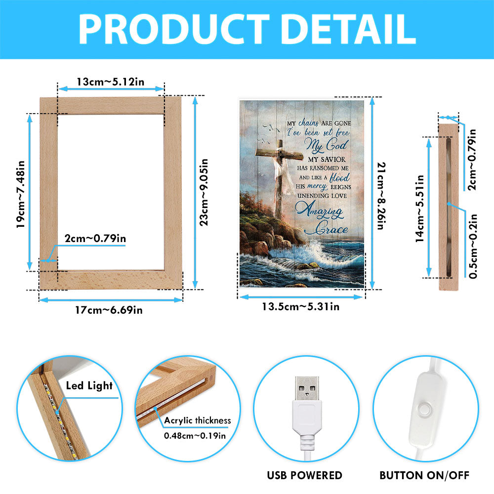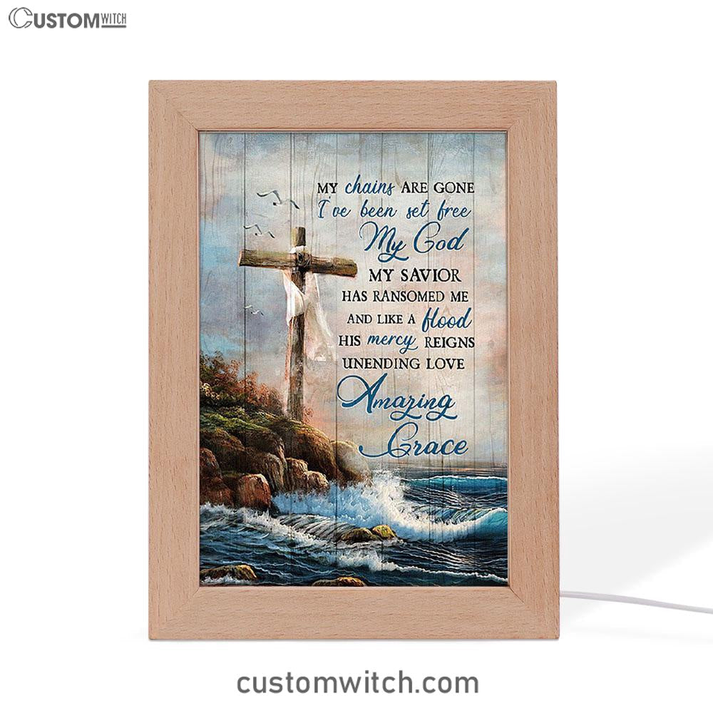 My Chains Are Gone God Cross Sea Frame Lamp Print - Inspirational Frame Lamp Art - Christian Art Home Decor