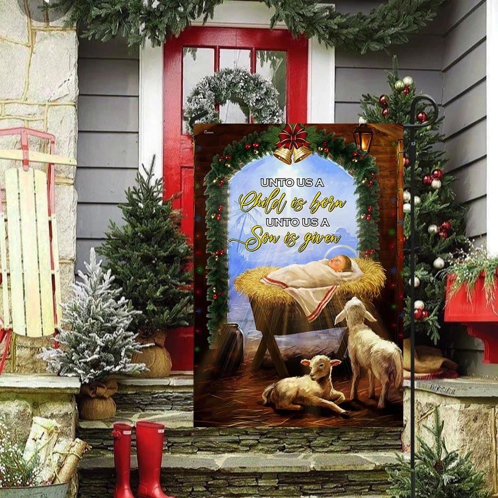 Nativity Of Jesus House Flag Unto Us A Child Is Born, Outdoor Religious Flags, Christian Flag, Scripture Flag, Garden Banner