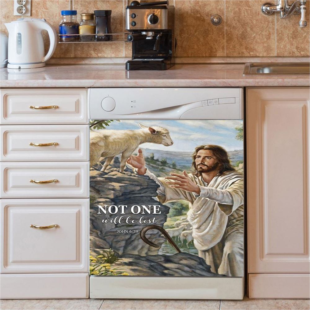 Not One Will Be Lost Jesus & Lamb Dishwasher Cover, Jesus Dishwasher Wrap, Christian Kitchen Decoration
