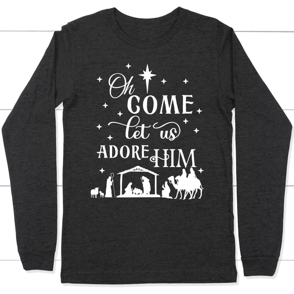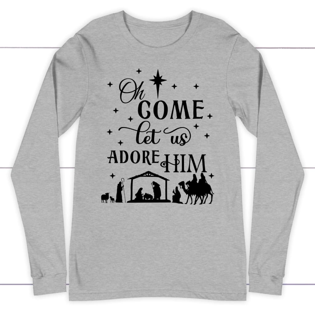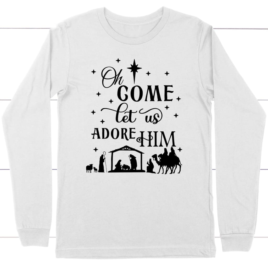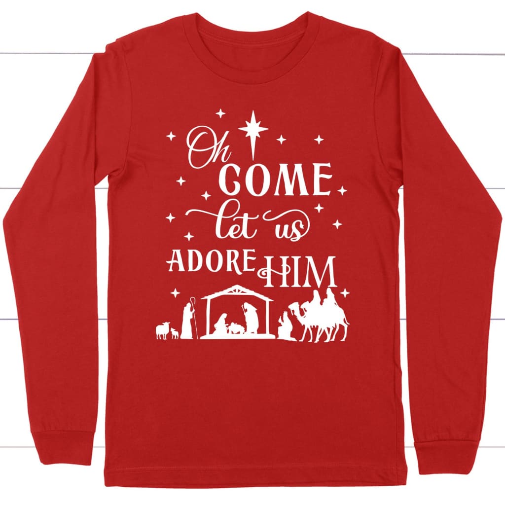 Oh Come Let Us Adore Him, Nativity Scene, Christmas Long Sleeve Shirt