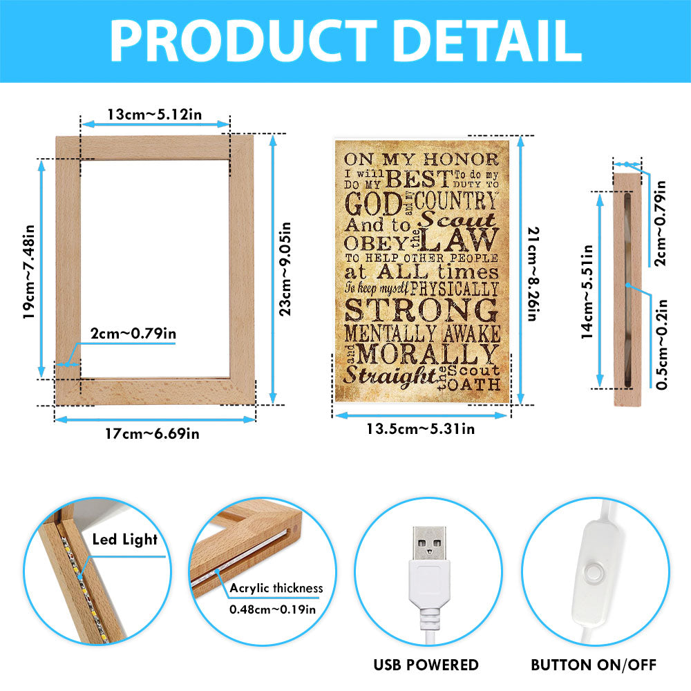 On My Honor I Will Do My Best Straight The Scout Oath Frame Lamp Art - Christian Frame Lamp - Religious Gifts Night Light