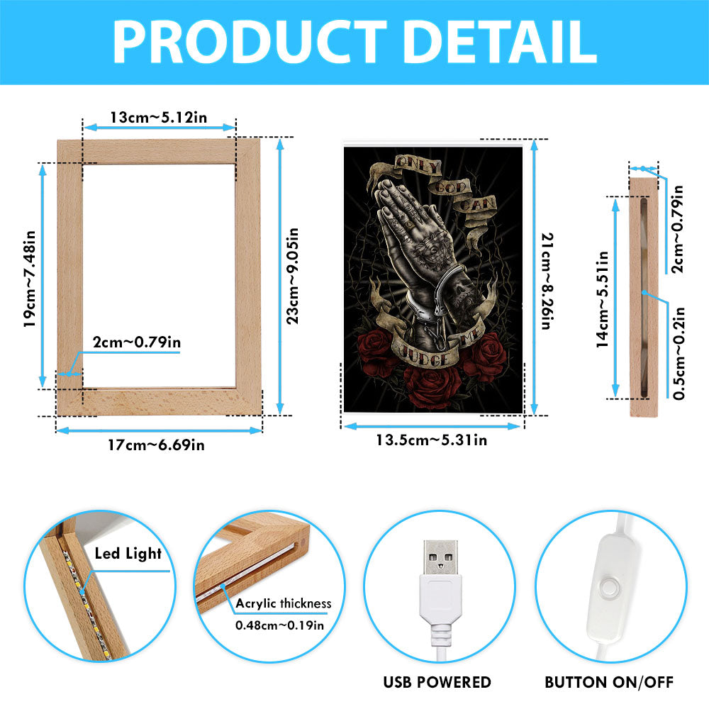 Only God Can Judge Me Hand Pray Frame Lamp Prints - Christian Decor - Bible Verse Wooden Lamp