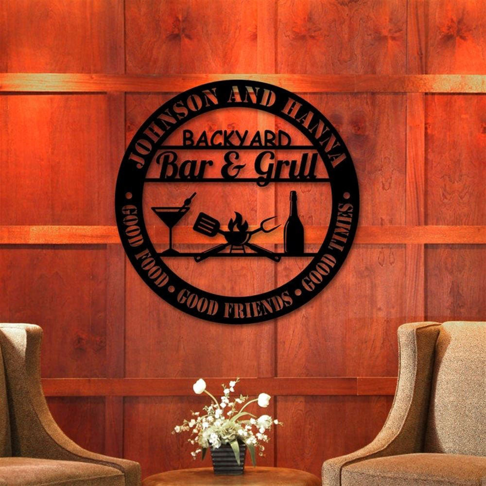 Personalized Backyard Bar & Grill Metal Wall, Beer Metal Wall Art Sign, Bbq Outside Wall Decor