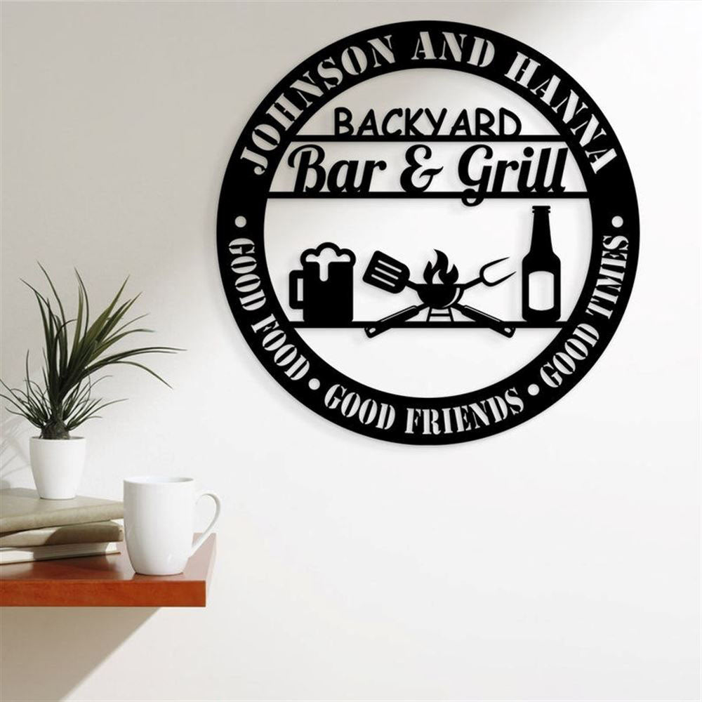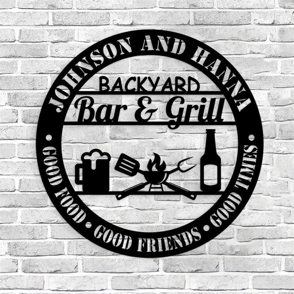 Personalized Backyard Bar & Grill Metal Wall, Kitchen Metal Sign, Bbq Outside Wall Decor
