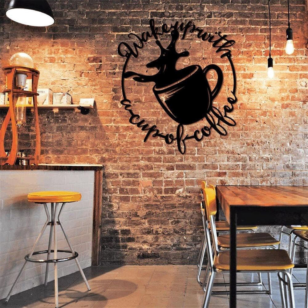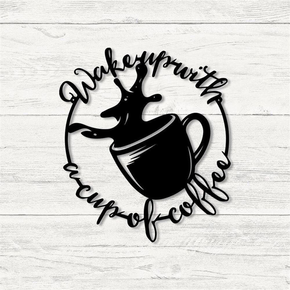 Personalized Coffee Bar Metal Wall, Wake Up With A Cup Of Coffee Metal Sign, Coffee Store Wall Art Decor, Gift For Coffee Lover, Bar Sign